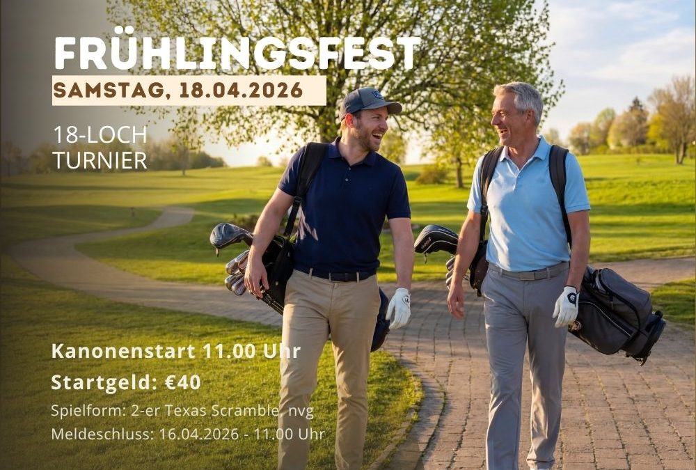 Am Samstag, 18.04.2026, starten wir im Golfer’s Club Bad Überkingen mit unserem Frühlingsfest & Angolfen 2026 gemeinsam in die neue Saison. Der Wetterbericht sieht vielversprechend aus, die ersten Bäume stehen bereits in Blüte, und unser Platz präsentiert sich in sehr gutem Zustand – beste Voraussetzungen für einen gelungenen Golftag. Das Turnier beginnt mit Kanonenstart um 11.00 Uhr, das Startgeld beträgt 40 €, gespielt wird ein 2er-Scramble über 18 Loch, Meldeschluss ist der 16.04.2026 um 11.00 Uhr.